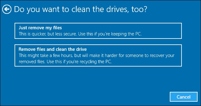There are three options that allow you to reset your PC. If you’ve tried just about everything else and your PC still isn’t running well, resetting it might fix the problem.